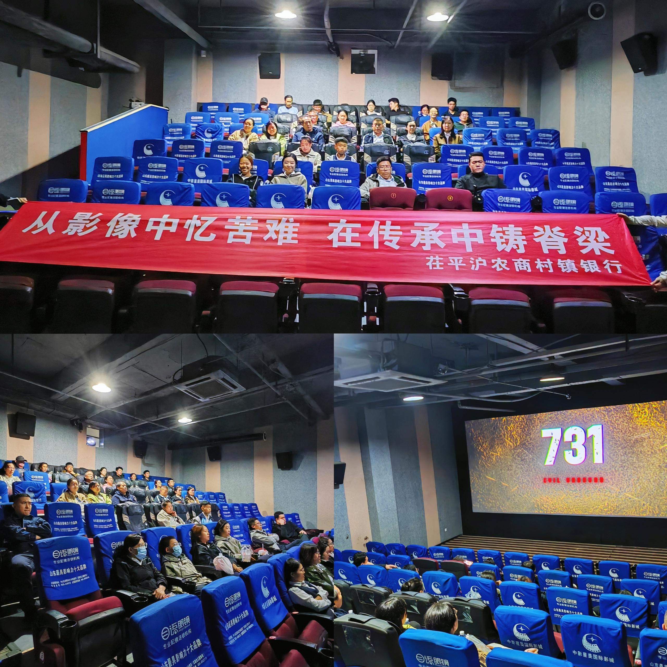 为深化爱国主义教育,铭记历史,传承红色基因,9月23日晚,茌平沪农商村镇银行以党建为引领,组织全体员工开展“从影像中忆苦难,在传承中铸脊梁”主题教育活动,集体观看电影《731》。这部电影深刻揭露了侵华日军第731部队的反人类暴行,为员工们上了一堂震撼人心的历史教育课。